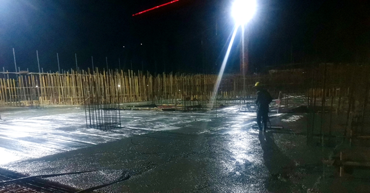 梁板的澆筑必須進(jìn)行連續(xù)施工方能保證質(zhì)量。由于施工作業(yè)面廣、作業(yè)時(shí)序長(zhǎng),茂名港務(wù)中心項(xiàng)目經(jīng)理部組織參建單位作了充分的施工交底,進(jìn)行了作業(yè)前各前置工序的復(fù)查,要求保質(zhì)保量完成每一道施工工序,并強(qiáng)調(diào)了夜間作業(yè)安全措施、輪班換班要求;提前與混凝土供應(yīng)商進(jìn)行溝通聯(lián)系,做足了材料準(zhǔn)備,確,F(xiàn)場(chǎng)澆筑工作的連續(xù)性。