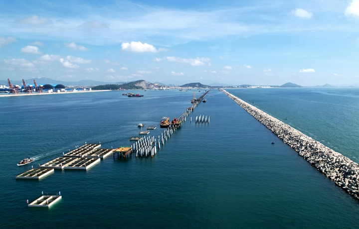 自今年7月11日安裝首個(gè)沉箱以來,茂名港集團(tuán)東區(qū)油品碼頭項(xiàng)目部與各參建單位圍繞沉箱安裝這一碼頭建設(shè)的“大”難題,時(shí)刻跟蹤施工水域氣象動(dòng)態(tài),精心收集整理潮位數(shù)據(jù),克服過往漁船頻繁及涌浪頻發(fā)等不利因素,高效合理利用有效潮作業(yè)工期,積極統(tǒng)籌,對(duì)每個(gè)沉箱安裝都制定了詳細(xì)的作業(yè)計(jì)劃和預(yù)案,安全高效地將12個(gè)沉箱全部安裝完成! 沉箱全部安裝完成是東區(qū)油品碼頭建設(shè)的重要里程碑,標(biāo)志著項(xiàng)目建設(shè)邁出最堅(jiān)實(shí)一步,也為東區(qū)油品碼頭高質(zhì)量建設(shè)奠定堅(jiān)實(shí)的基礎(chǔ)。(鐘春林) |