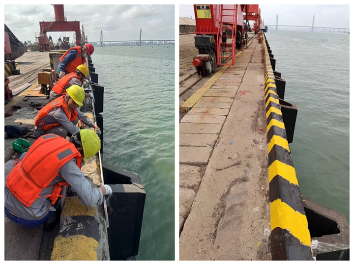 在日常安全巡查中,發(fā)現(xiàn)港口經(jīng)營(yíng)公司萬噸級(jí)碼頭前沿?cái)r水坎,出現(xiàn)局部混凝土損壞、鋼筋裸露的情況,若不及時(shí)修復(fù),將對(duì)海洋安全產(chǎn)生環(huán)境污染。按常規(guī)流程,該項(xiàng)修復(fù)工作費(fèi)用高、工期長(zhǎng)且需外委專業(yè)施工隊(duì),但公司黨支部在“書記項(xiàng)目”推進(jìn)會(huì)上明確要求:“在確保安全與質(zhì)量的前提下,能自主完成的絕不外委!”港口經(jīng)營(yíng)公司黨支部書記劉芳芳主動(dòng)領(lǐng)題,牽頭組織黨員干部,集結(jié)涵蓋結(jié)構(gòu)工程、機(jī)械維修、安全管理等專業(yè)的黨員技術(shù)骨干,把“硬骨頭”變成“練兵場(chǎng)”。 “攔水坎修復(fù)要兼顧船舶靠泊時(shí)產(chǎn)生的擠壓碰撞力,混凝土配比、鋼筋加固都得精準(zhǔn)。”黨支部組織委員、副總經(jīng)理黎陽生是港口經(jīng)營(yíng)公司技術(shù)“總工程師”,他帶著黨員維修組白天測(cè)量損壞面積、記錄鋼筋變形數(shù)據(jù),晚上研究修復(fù)技術(shù)規(guī)范,反復(fù)驗(yàn)算修復(fù)方案。為節(jié)省成本,他們翻遍倉庫“淘”出閑置的高強(qiáng)度螺紋鋼,自主切割焊接;利用碼頭現(xiàn)有的混凝土攪拌設(shè)備,按實(shí)驗(yàn)配比調(diào)配修補(bǔ)材料,經(jīng)過多次試驗(yàn),最終確定“基層清理+鋼筋網(wǎng)加固+分層澆筑+防水警示涂層”的修復(fù)工藝。