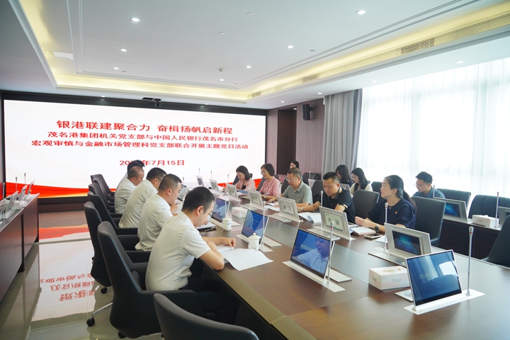 為深入學(xué)習(xí)貫徹習(xí)近平新時代中國特色社會主義思想,進一步加強黨建引領(lǐng),推動黨建與業(yè)務(wù)深度融合,7月15日,茂名港集團機關(guān)黨支部與中國人民銀行茂名市分行宏觀審慎與金融市場管理科黨支部、國家外匯管理局茂名市分局黨總支聯(lián)合開展了主題黨日活動。中國人民銀行茂名市分行二級調(diào)研員嚴青,集團黨委委員、副總裁楊超燦以及雙方黨支部書記、黨員代表共20余人參加活動。