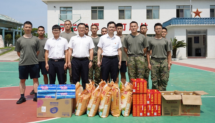 7月30日,根據(jù)集團(tuán)黨委工作部署,集團(tuán)黨委副書記、總裁肖炳璋率隊(duì)到蓮頭嶺某部開展“八一”建軍節(jié)擁軍慰問活動(dòng),向部隊(duì)官兵致以節(jié)日的祝福和誠摯的問候。 慰問中,肖炳璋與官兵們親切交談,詳細(xì)詢問了官兵的日常生活、學(xué)習(xí)和執(zhí)勤訓(xùn)練情況,對他們?yōu)槊?jīng)濟(jì)社會(huì)發(fā)展作出的重大貢獻(xiàn)表示衷心感謝和崇高敬意。他表示,茂名港集團(tuán)的快速發(fā)展,離不開駐地部隊(duì)的有力支持。集團(tuán)將一如既往地關(guān)心和支持軍隊(duì)建設(shè),用心用情用力做好擁軍優(yōu)屬工作。他希望,雙方不斷加強(qiáng)溝通交流,推動(dòng)軍民融合深度發(fā)展,打造和諧穩(wěn)定的優(yōu)良港口營商環(huán)境,攜手共同應(yīng)對當(dāng)前復(fù)雜的經(jīng)濟(jì)形勢和多重困難挑戰(zhàn),共同譜寫新時(shí)代雙擁工作新篇章。
