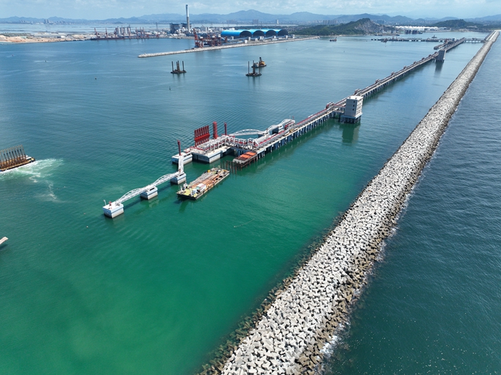 茂名港集團(tuán)30萬(wàn)噸級(jí)原油碼頭工程是廣東省重點(diǎn)項(xiàng)目工程,是茂名港進(jìn)一步提升港口等級(jí)的標(biāo)志性工程,對(duì)完善博賀新港區(qū)碼頭布局、豐富港口服務(wù)功能、提升港口競(jìng)爭(zhēng)力具有重要意義。項(xiàng)目位置距離口門(mén)僅690米,受海上涌浪影響較大,沉箱出運(yùn)安裝施工難度大,安全風(fēng)險(xiǎn)高。經(jīng)項(xiàng)目部精密策劃,專項(xiàng)施工方案通過(guò)專家評(píng)審,針對(duì)性地進(jìn)行技術(shù)、安全、驗(yàn)收程序交底,有序推進(jìn)各項(xiàng)施工作業(yè),確保施工安全。